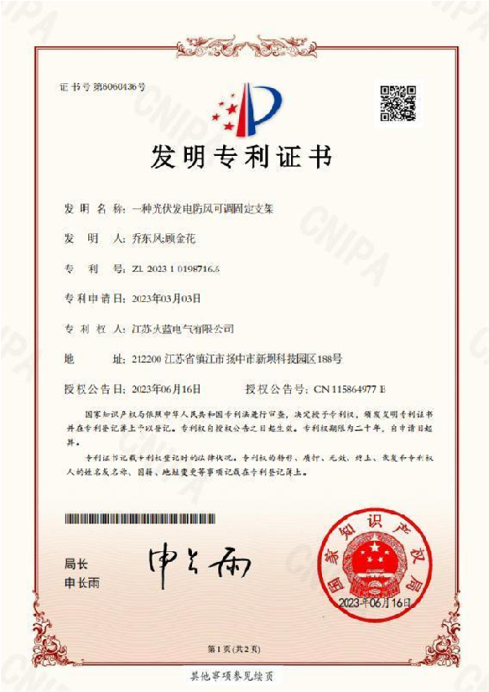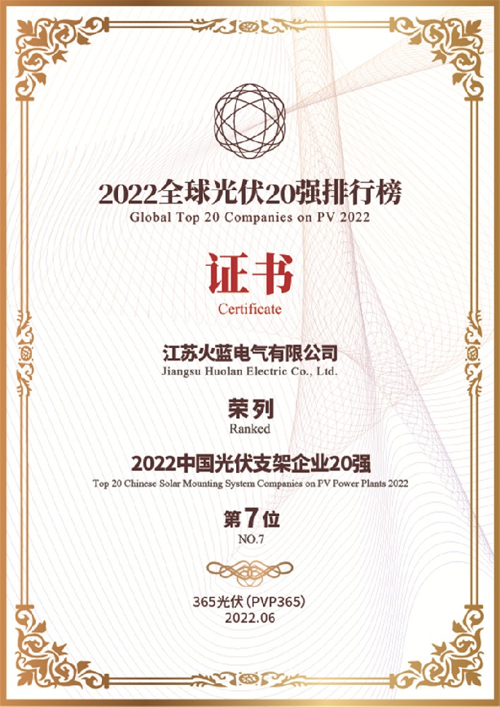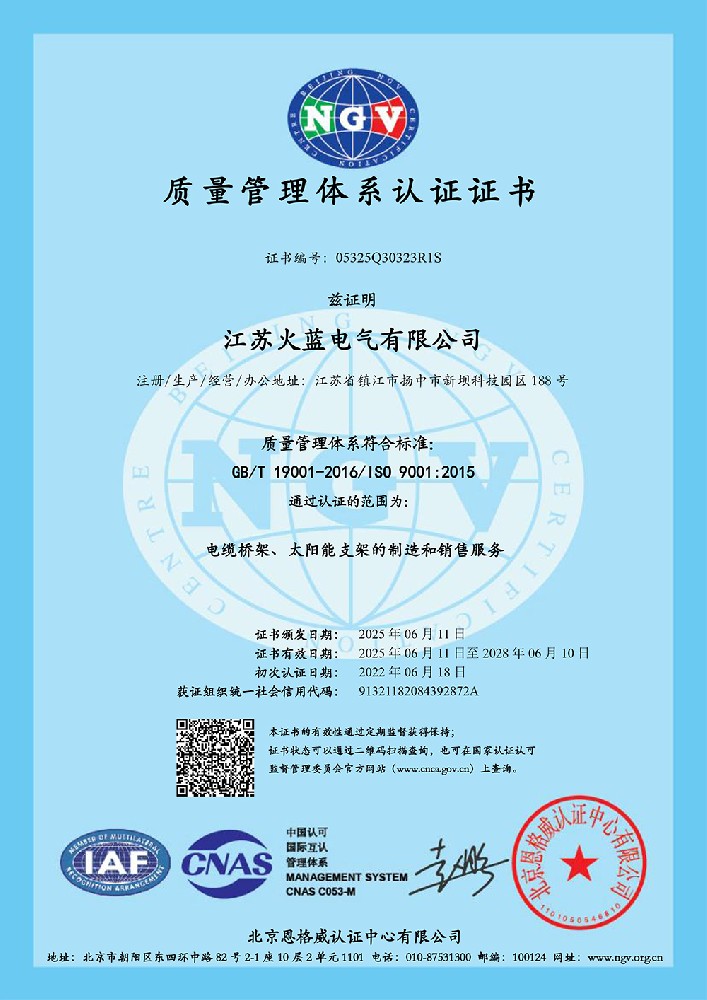 江蘇火藍電氣有限公司創建于2013年,總部位于素有“中國工程電氣島”、“綠色能源島”之稱的蘇南現代化建設示范區,長江中下游黃金水道-----江蘇省揚中市。公司以太陽能光伏支架、電纜橋架為主要產業,引進國內外智能全自動支架生產線、智能焊接機器人等設備,產品年生產能力達20GW,項目應用范圍涵蓋大型地面、水面光伏電站和分布式光伏電站。